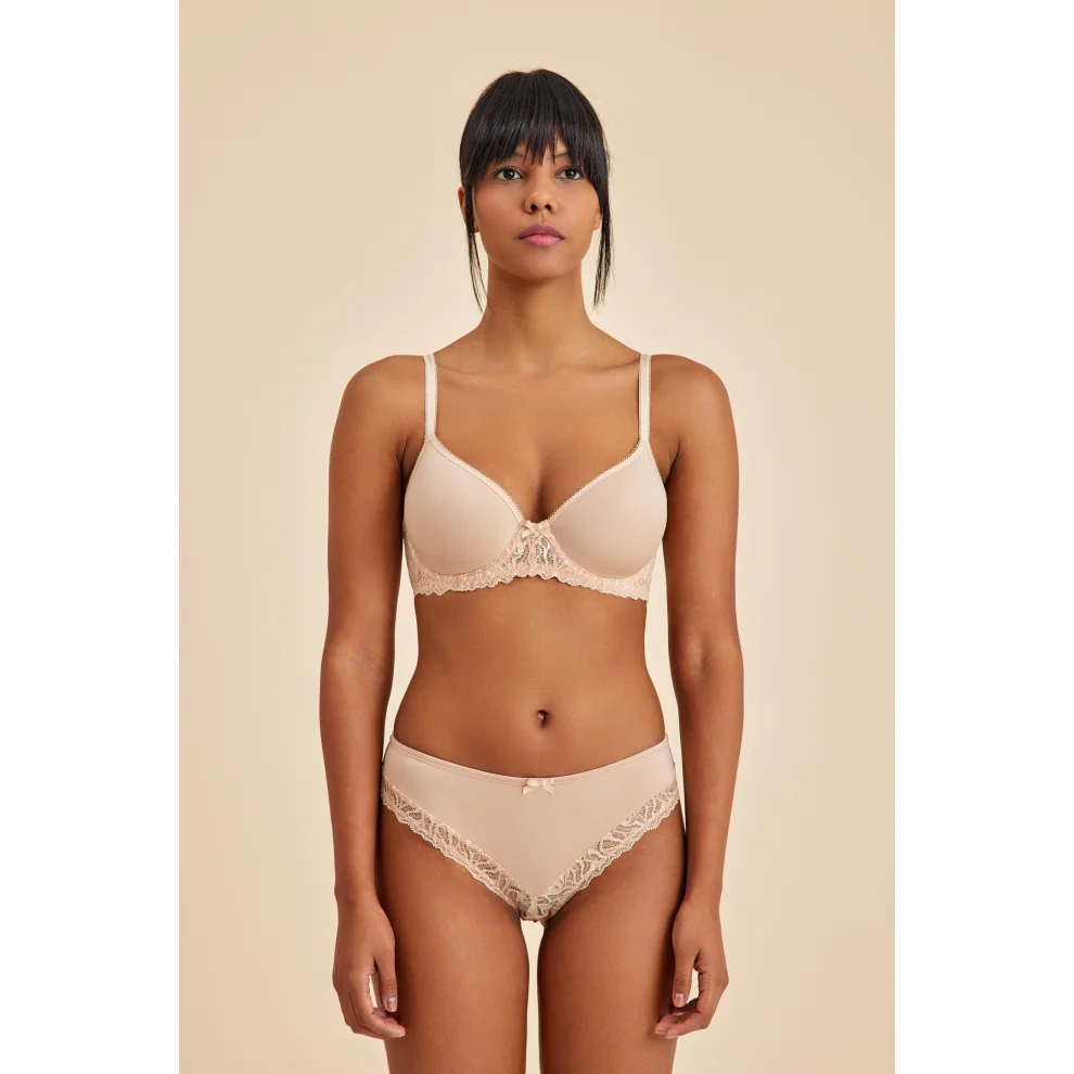 Şık ve konforlu bir stil için bu nefes alabilen kaplı sütyen, vücudu destekleyici ve şık bir seçenektir. Kanatlarda astar destekli ve balenli yapısıyla, mükemmel bir uyum sağlar ve doğal bir toparlayıcı etki sunar. Süslü lastik detayları, zarif bir dokunuş eklerken, tulum dikişli tasarımı hareket özgürlüğü sağlar.Kırılmaya karşı dayanıklı malzemeden üretilmiş olan bu sütyen, uzun ömürlü ve güvenilirdir. Ayarlanabilir askıları ve agraflı kapatma sistemi sayesinde, kişisel tercihinize göre kolayca ayarlanabilir.