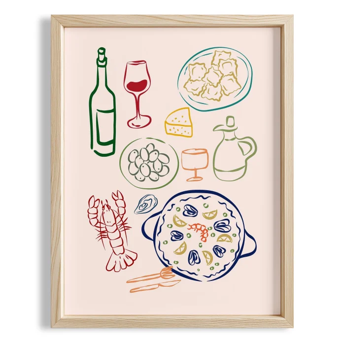 Ürün: Akdeniz Sofrası Minimal Çizimler Mutfak Duvar Tablosu Ii