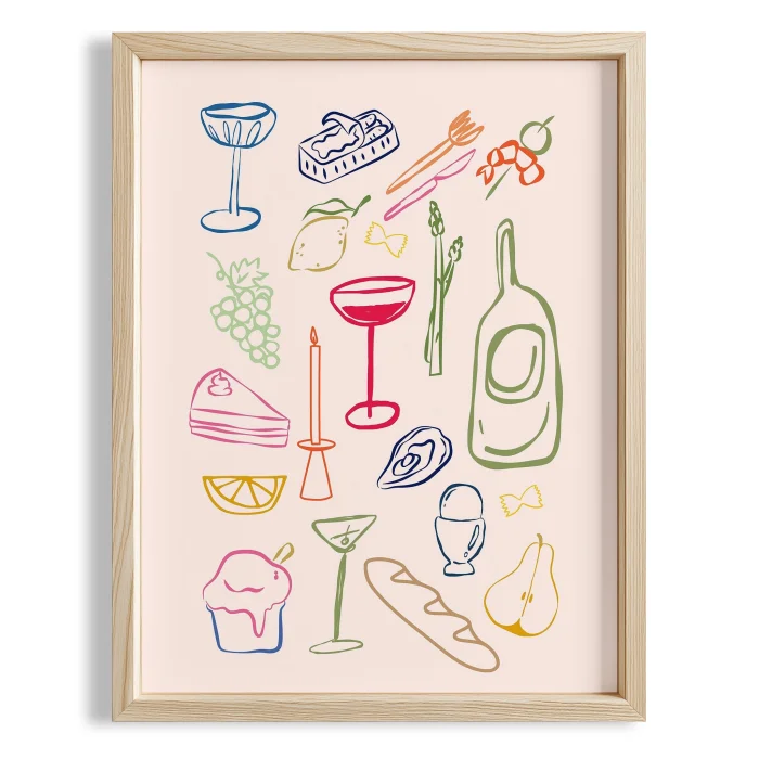 Akdeniz Sofrası Minimal Çizimler Mutfak Duvar Tablosu Iii