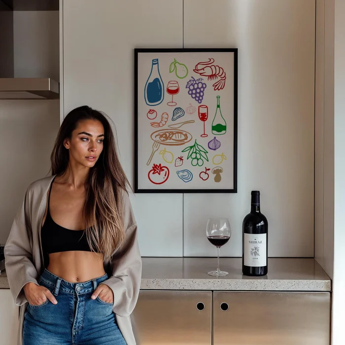 Ürün: Akdeniz Sofrası Minimal Çizimler Mutfak Duvar Tablosu