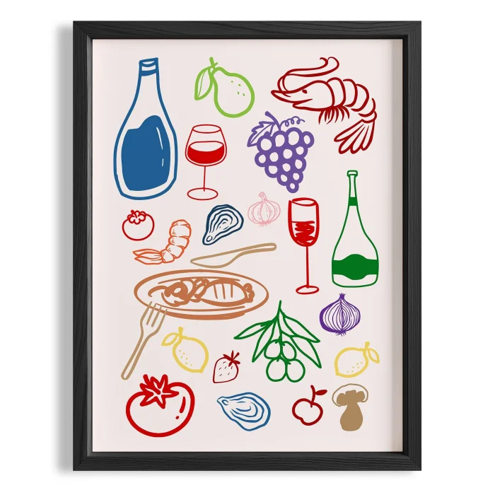 Akdeniz Sofrası Minimal Çizimler Mutfak Duvar Tablosu