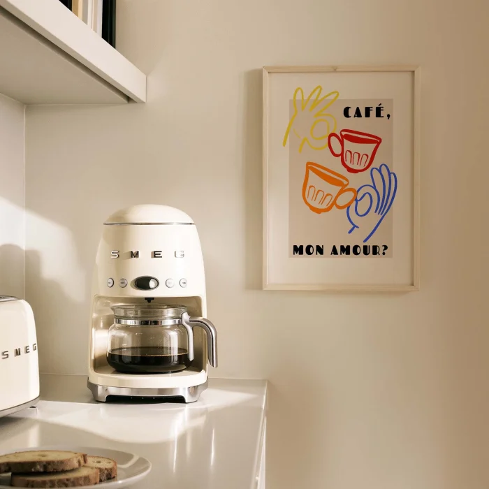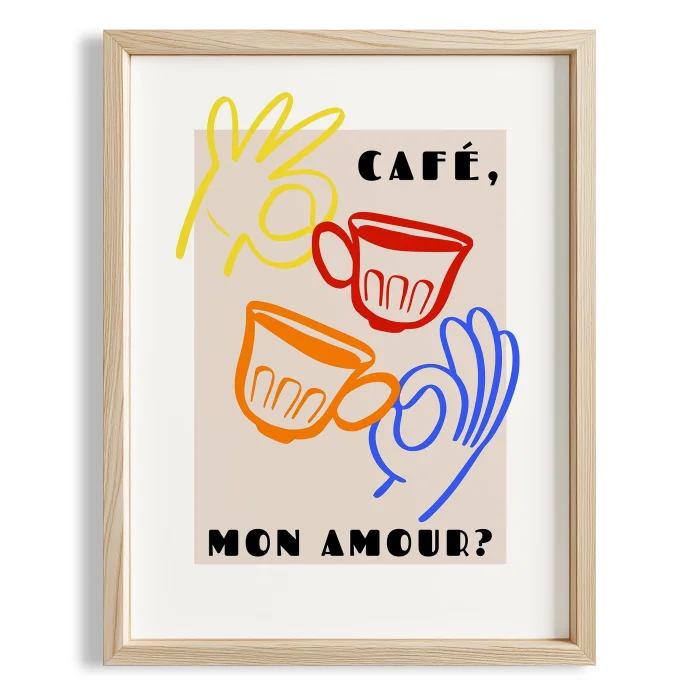 Ürün: Cafe Mon Amour Fransız Renkli Minimal Çizimler Mutfak Duvar Tablosu