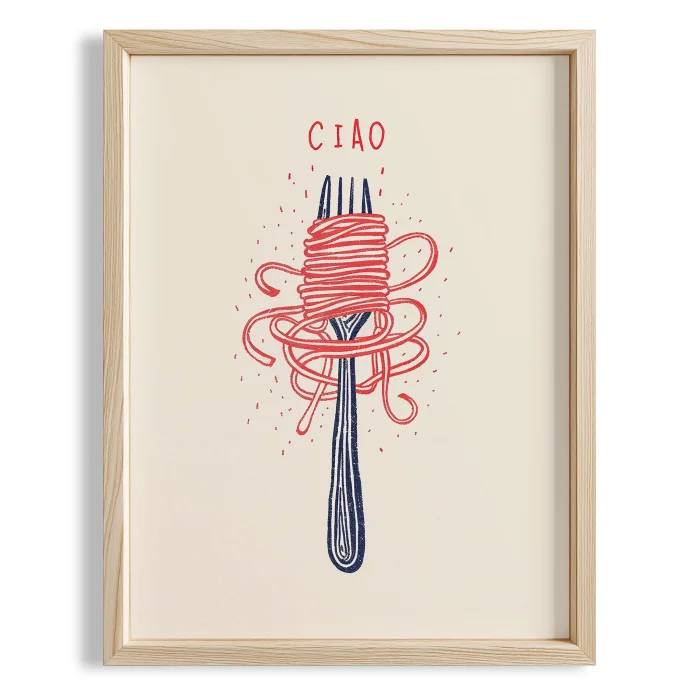 Ürün: Ciao İtalyanca Tipografi Makarnalı Minimal Mutfak Duvar Tablosu Ii