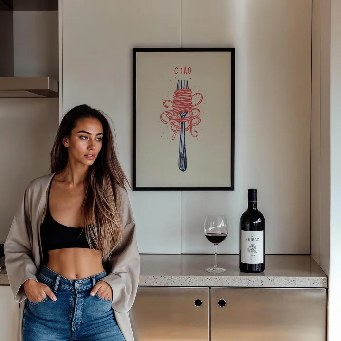 Ürün: Ciao İtalyanca Tipografi Makarnalı Minimal Mutfak Duvar Tablosu Ii