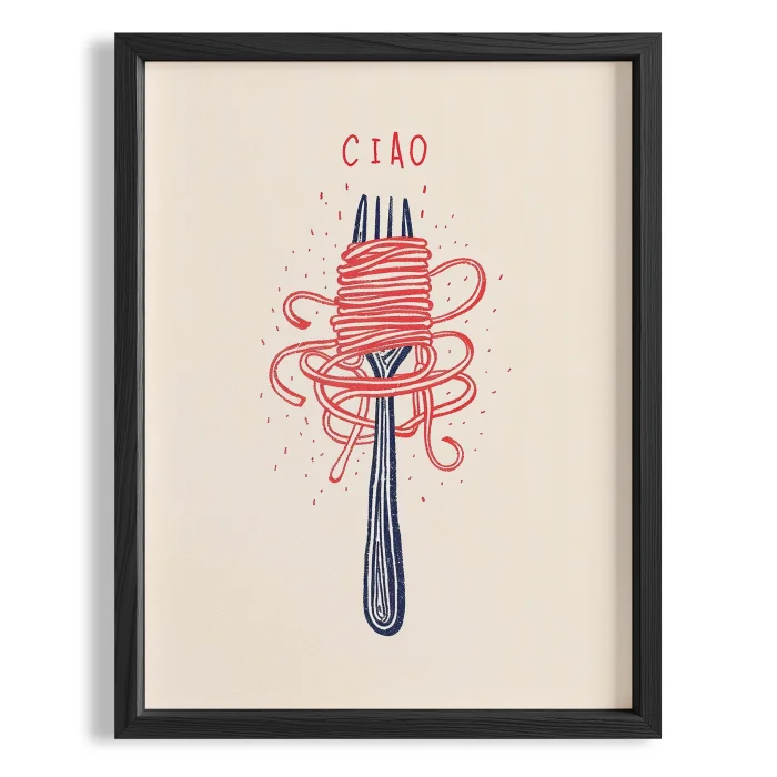 Ürün: Ciao İtalyanca Tipografi Makarnalı Minimal Mutfak Duvar Tablosu Ii