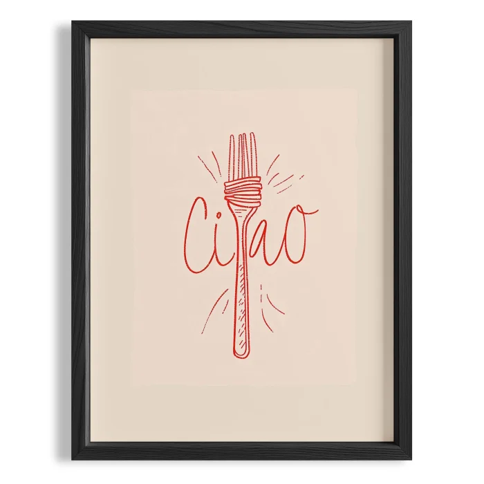 Ürün: Ciao İtalyanca Tipografi Makarnalı Minimal Mutfak Duvar Tablosu