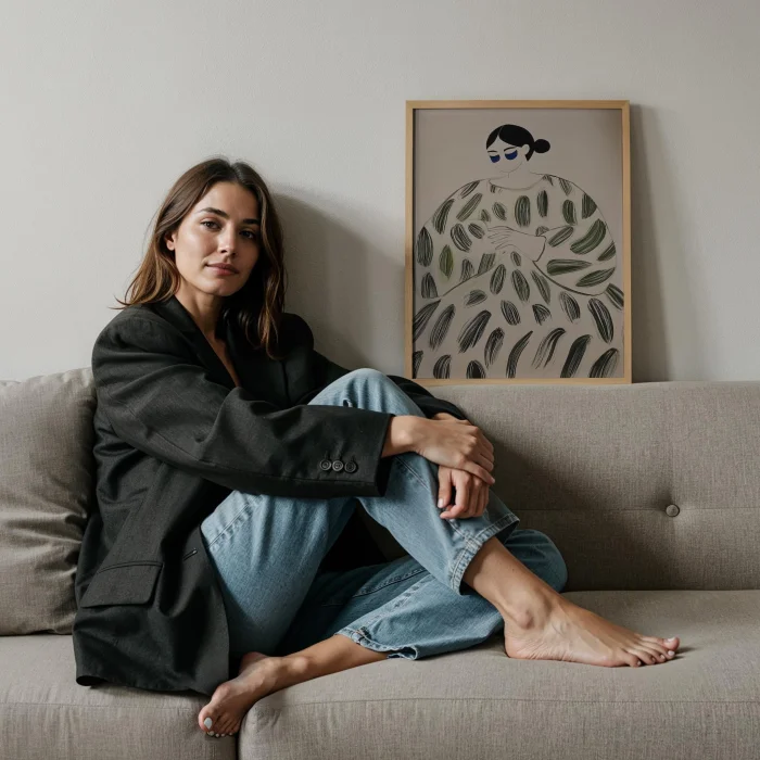 Ürün: Kadın Portre Minimalist Ahşap Çerçeveli Tablo