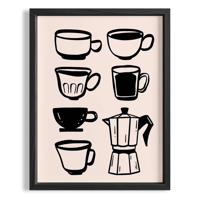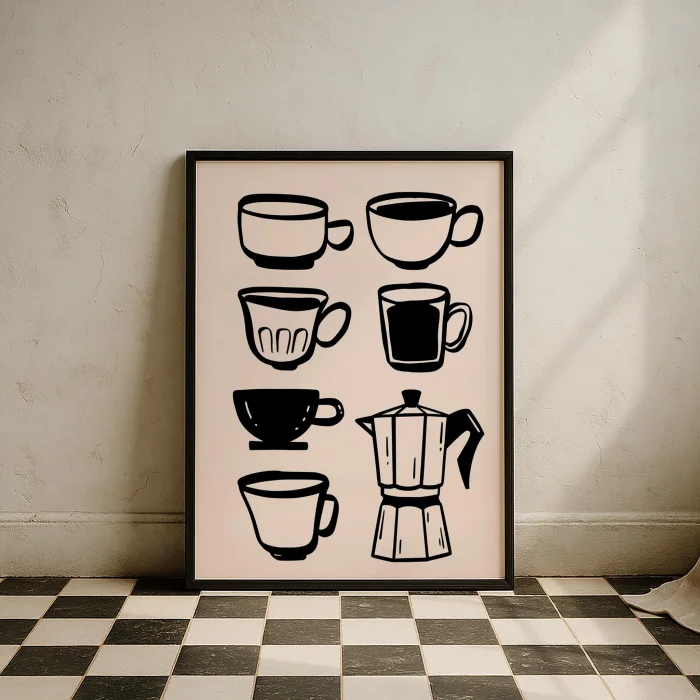 Ürün: Kahve Kupaları Ve Moka Pot Minimal Çizimler Mutfak Duvar Tablosu
