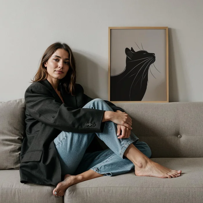 Ürün: Kedi Portre Minimalist Ahşap Çerçeveli Tablo