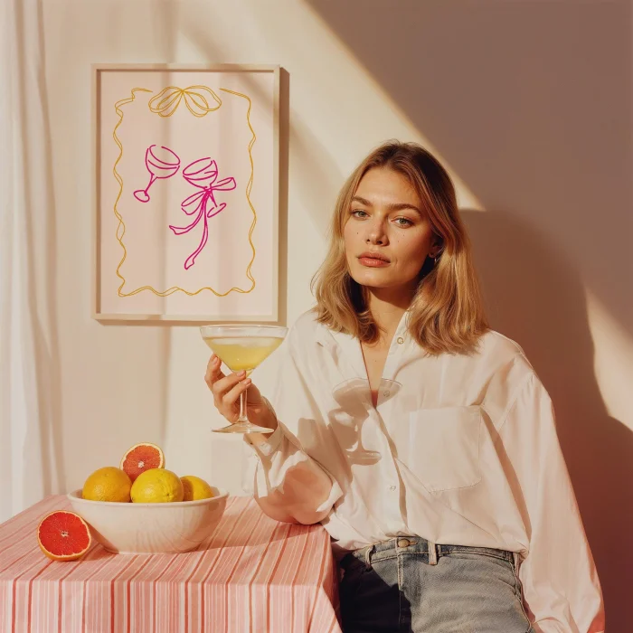 Ürün: Kurdeleli Kadehler Minimal Çizim Mutfak Duvar Tablosu