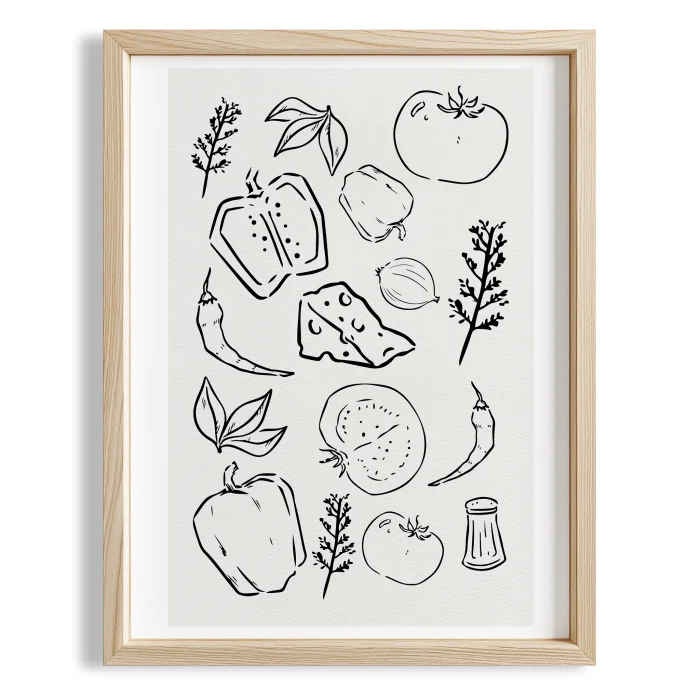 Minimal Sebzeler Mutfak Duvar Tablosu