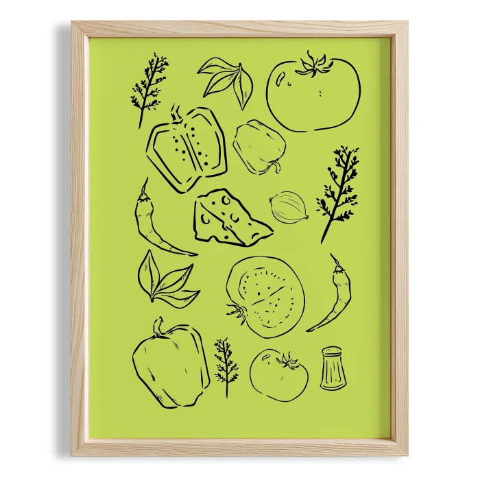 Ürün: Minimal Sebzeler Yeşil Mutfak Duvar Tablosu