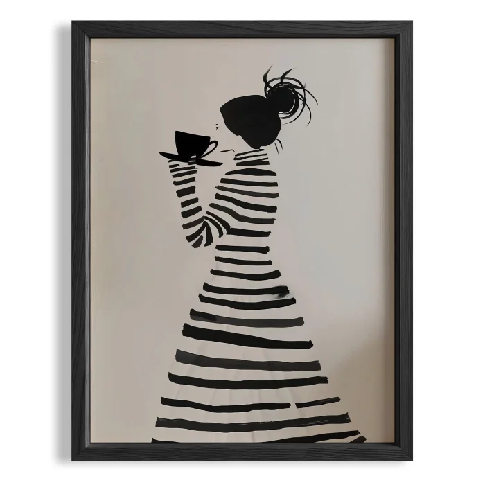 Ürün: Minimalist Çizgili Kadın Kahveyle Ahşap Çerçeveli Tablo