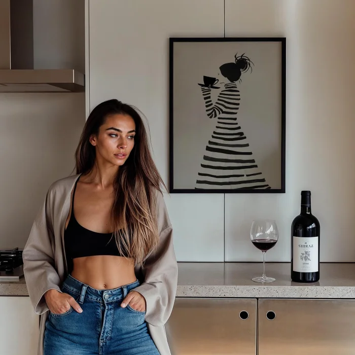 Ürün: Minimalist Çizgili Kadın Kahveyle Ahşap Çerçeveli Tablo