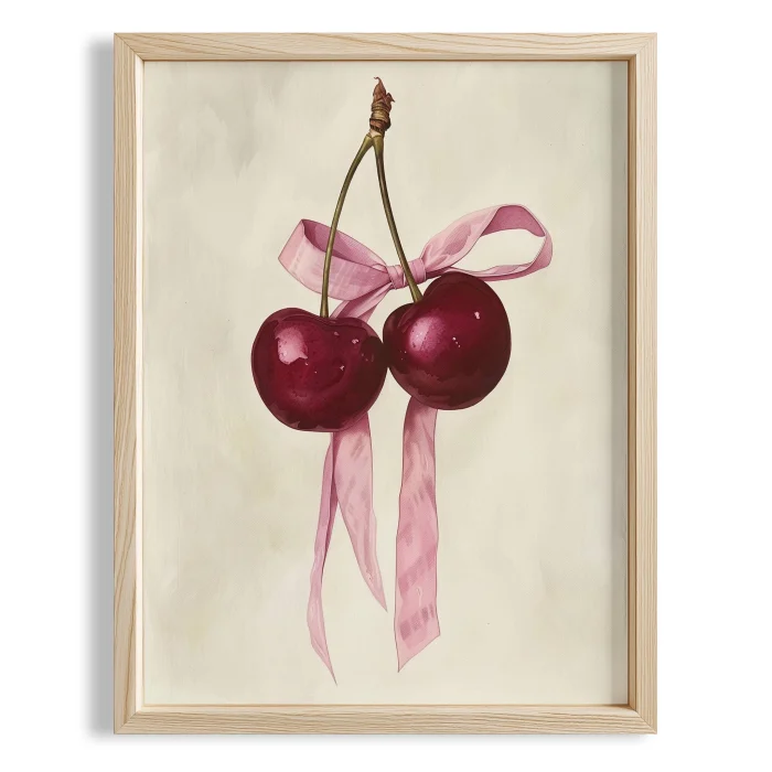 Ürün: Pembe Kurdela Ve Kiraz Minimal - Duvar Tablosu
