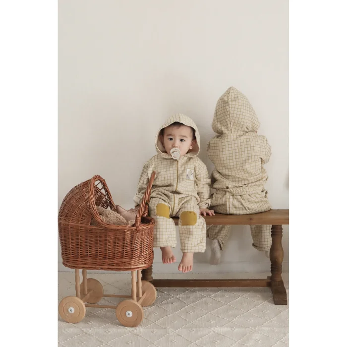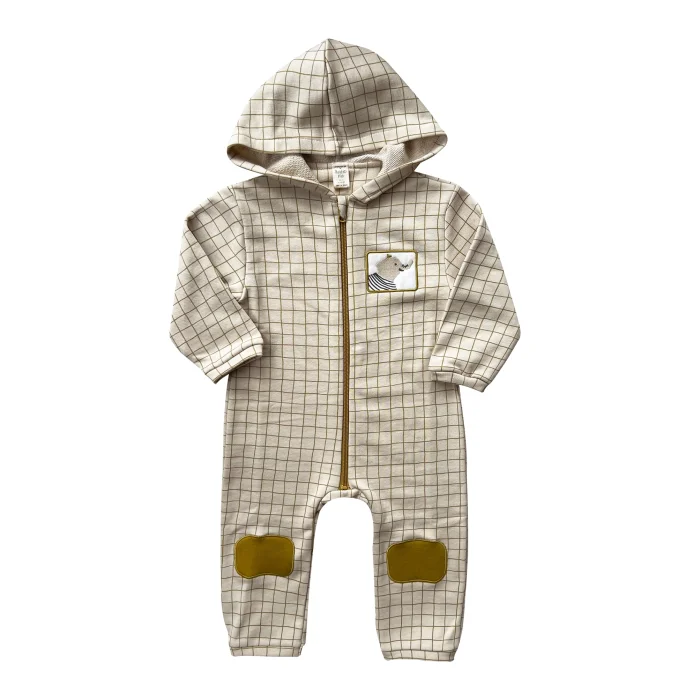Ürün: Olive Oil Checked Fermuarlı Kapüşonlu Tulum