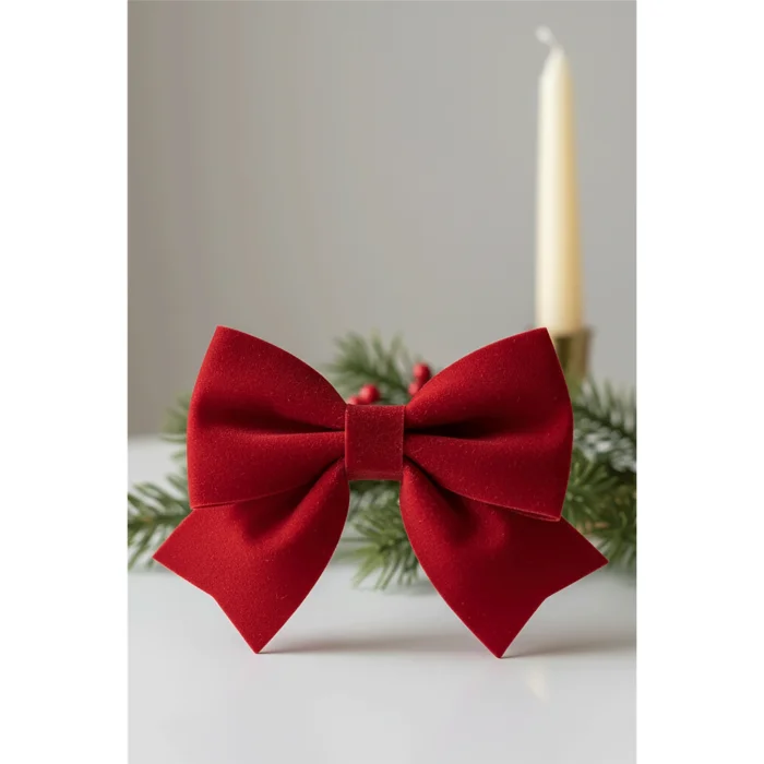 Klasik kırmızı tonuyla yılbaşı dekorasyonunun en zamansız detayı. Yumuşacık kadife dokusu ve hacimli formu ile hem ağaç süslerinde hem hediye paketlerinde sıcak ve şık bir görünüm yaratır.