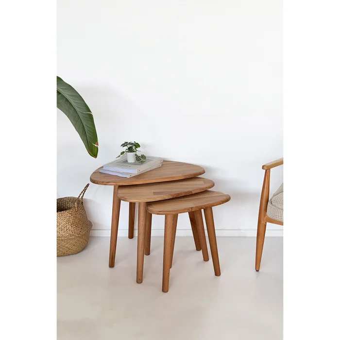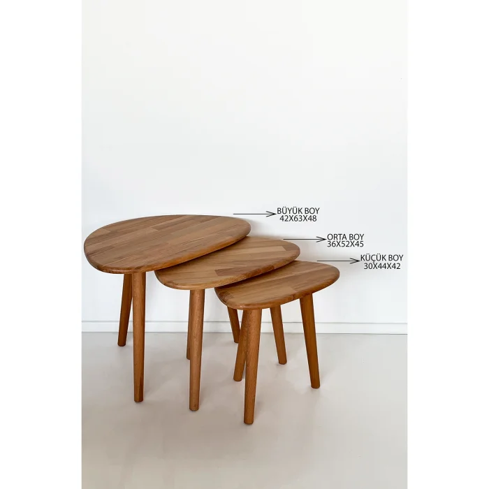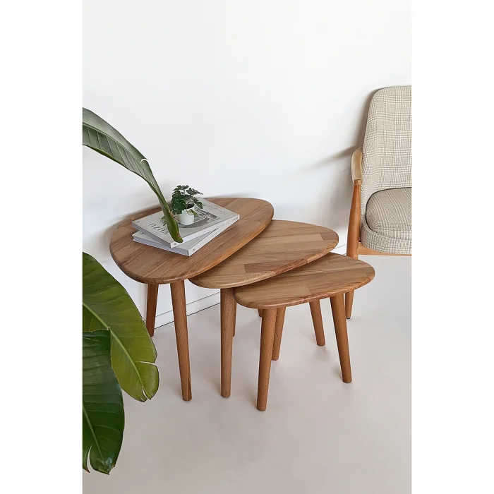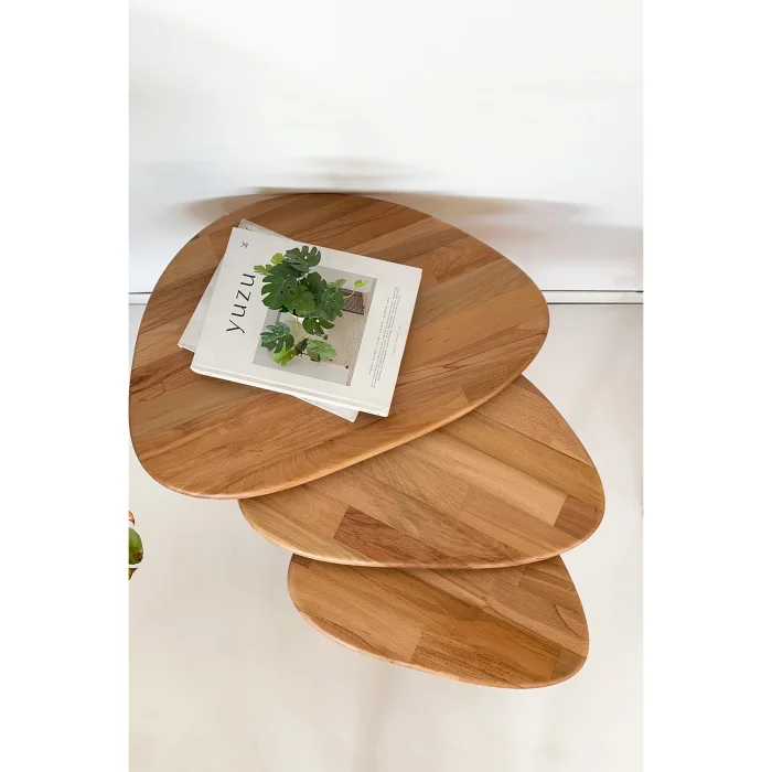 Ürün: Doğal Masif Ahşap Damla Sehpa Seti - 3'lü Zigon Set Modern Ve Minimalist Sehpa Takımı (yan Sehpa, Orta Sehpa, Dekoratif Sehpa)