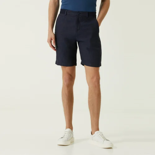 100% Keten Bermuda Şort. Beli garnili, 2 ön 2 arka cep detaylı bermuda şort