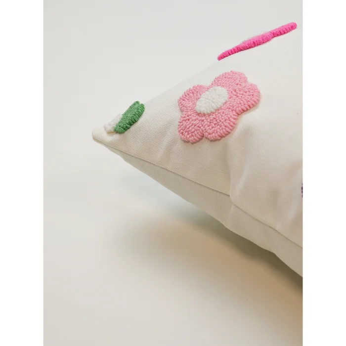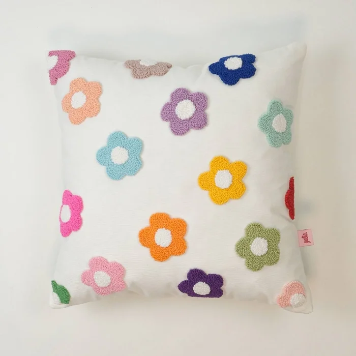 Ürün: Bloom - Papatya Desenli Dekoratif Kırlent Kılıfı | El Yapımı Punch Needle Tasarım