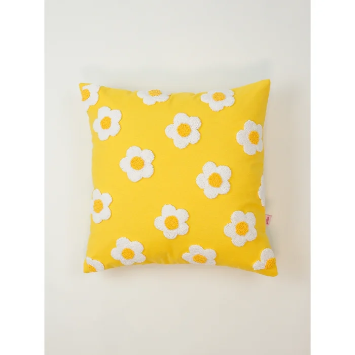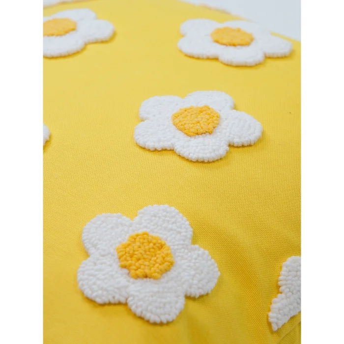 Ürün: Bloom - Papatya Desenli Dekoratif Kırlent Kılıfı | El Yapımı Punch Needle Tasarım