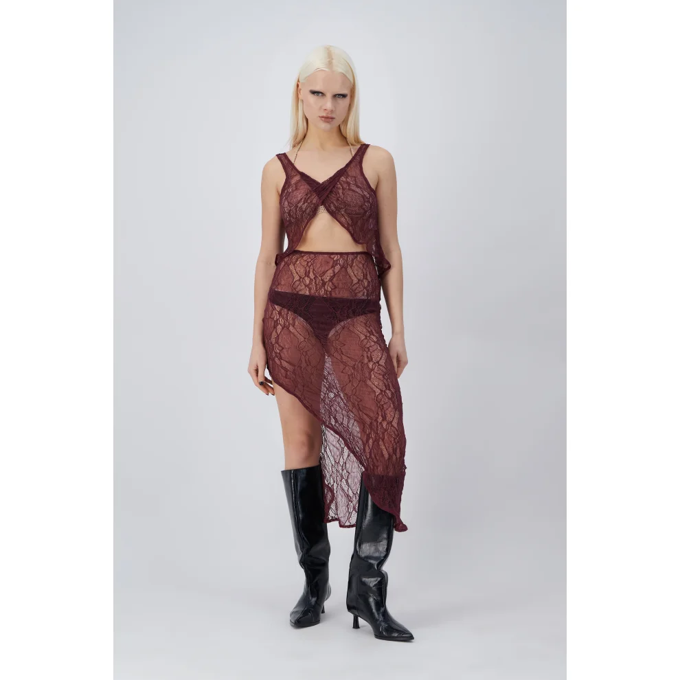 Feeling Clouds Yüksek Bel Uzun Yumuşak Dantel Transparan Etek Ve Üst - Pareo , Plaj Giyim , Bikini Üstü