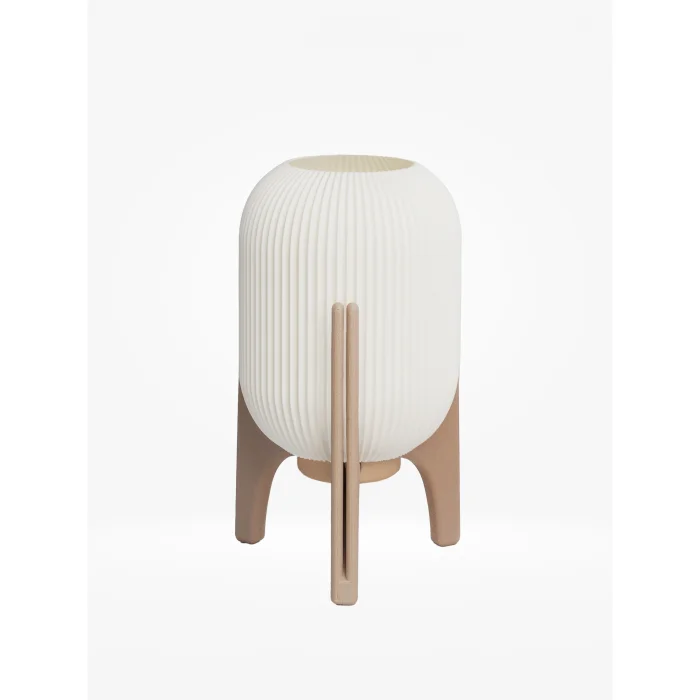 Malzeme Geri dönüştürülmüş PLA'dan üretilmiş abajur ve taban. Cam veya seramik değildir. Hafif ve dayanıklı bir yapıya sahiptir.