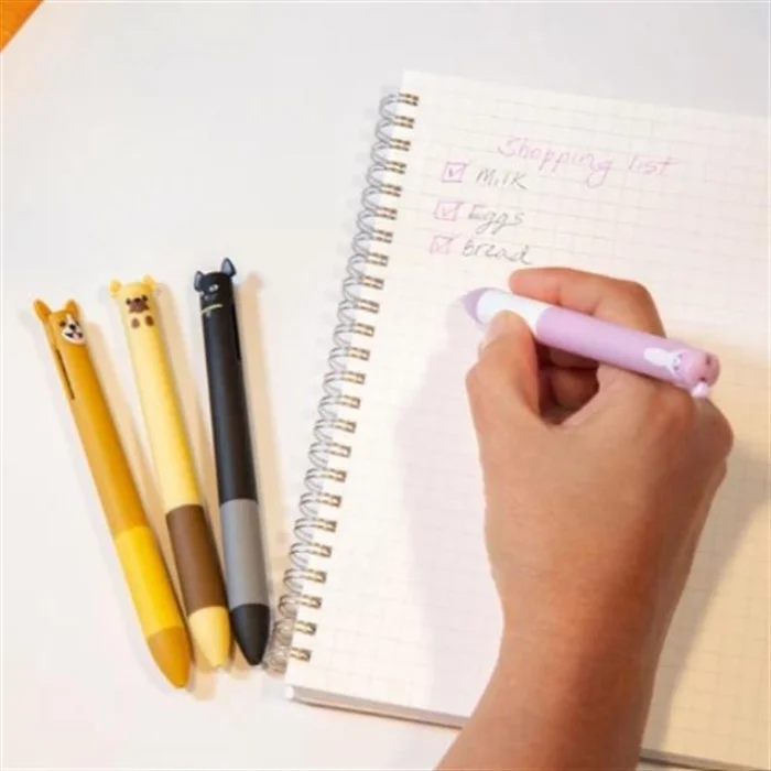 Çevrilmiş metin: Bu 3 canlı renk yolundaki çeşitli not defterleriyle taze kırtasiye stilinizi sergileyin. 96 sayfa çizgili, spiral ciltli FSC kağıt içerir. 6 mm aralıklı A5 boyutu.Lütfen bu ürünün çeşitli olduğunu unutmayın. Rastgele bir renk/tasarım alacaksınız.Tasarım: Malzemeler: FSC kağıtAmbalaj: FSC göbek bandıEn sevdiğimiz kedi ve köpek dostlarımızı içeren bu çok renkli tıklamalı kalemleri takdir etmek için bir anlığına patilerinizi kullanın.Her kalemin 2 renkli mürekkebi vardır. 0.5 mm kalınlığındadır.Bu ürün karışık gönderilmektedir. Bu sebeple istediğiniz özel bir renk varsa sipariş notunda belirtmenizi rica ederiz.