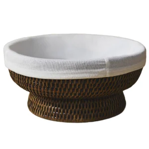 Rattan Ekmek Sepeti: Sürdürülebilebilir 1. sınıf rattan kullanılarak yapılan bu ürünümüz, Yangon’daki usta zanaatkarların kullandığı geleneksel sıkı el örmesi tekniğiyle yapılmıştır. Renk: Mat Orta Kahve Malzeme: El Yapımı Rattan, Organik Pamuk Boyut: 26(U)X26(G)X12(Y) cm