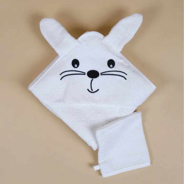 Ürün: Kids %100 Pamuk Tavşan Desen Nakışlı Ve Kese Hediyeli Bebek Havlu Kundak