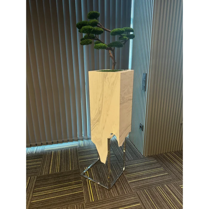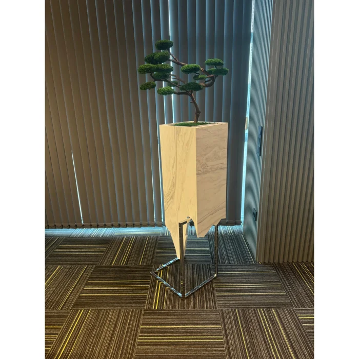 El işçiliğiyle şekillendirilmiş bu özel tasarım saksı, doğanın zamansız asaleti ile modern geometrik formları buluşturuyor.