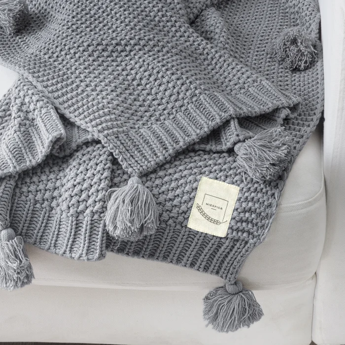 Ürün: Coco Pirinç Örgü Ponponlu Triko Battaniye Koltuk Şalı