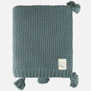 Miespiga - Su Yeşili Coco Pirinç Örgü Ponponlu Triko Battaniye Koltuk Şalı | hipicon