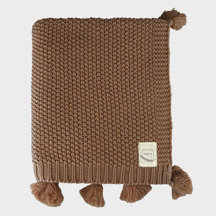 Coco Pirinç Örgü Ponponlu Triko Battaniye Koltuk Şalı