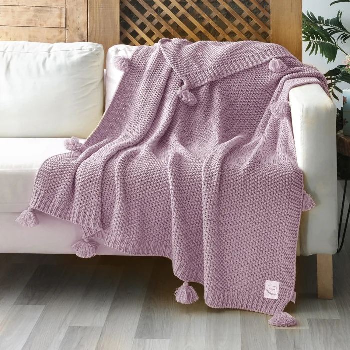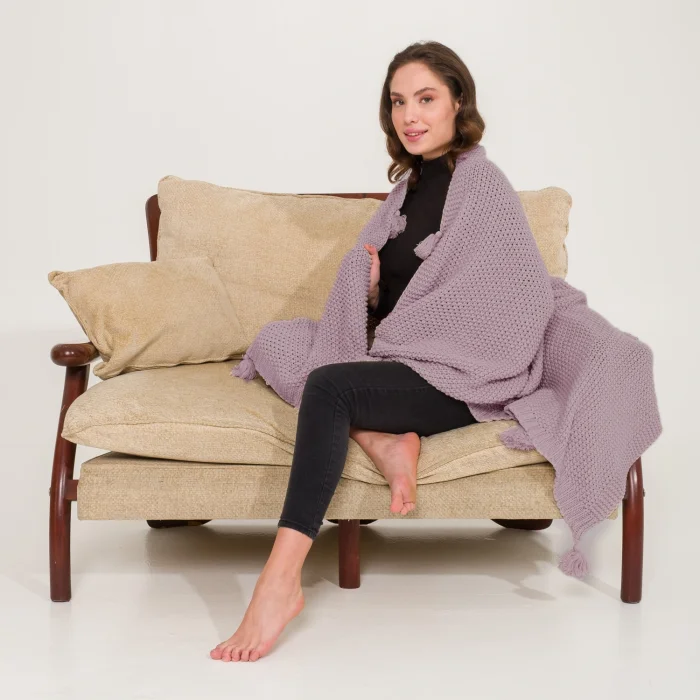 Ürün: Coco Pirinç Örgü Ponponlu Triko Battaniye Koltuk Şalı