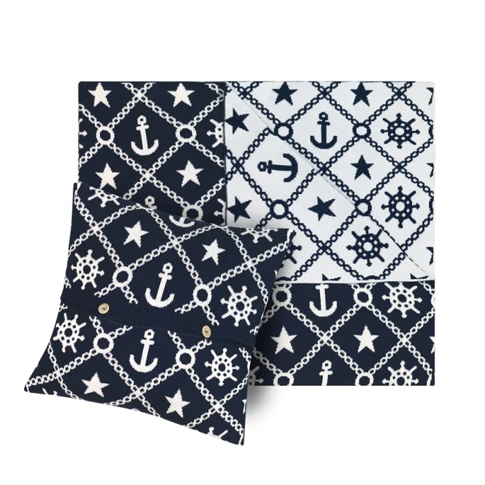 Marin Desen Triko Battaniyesi ve kılıfı%100 pamuktan üretilmiştir.