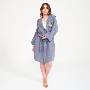 Ürün: Ördek Nakışlı Kısa Kapüşonlu Müslin Kadın Bornoz