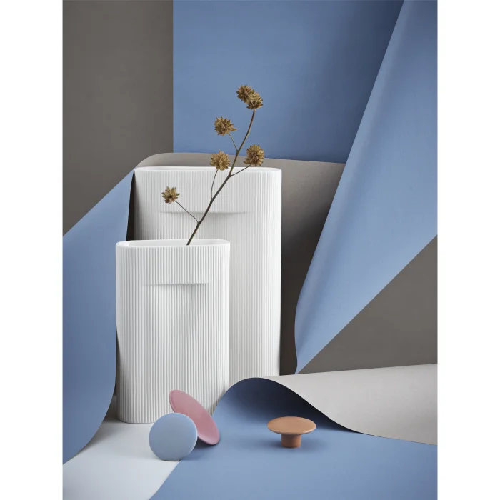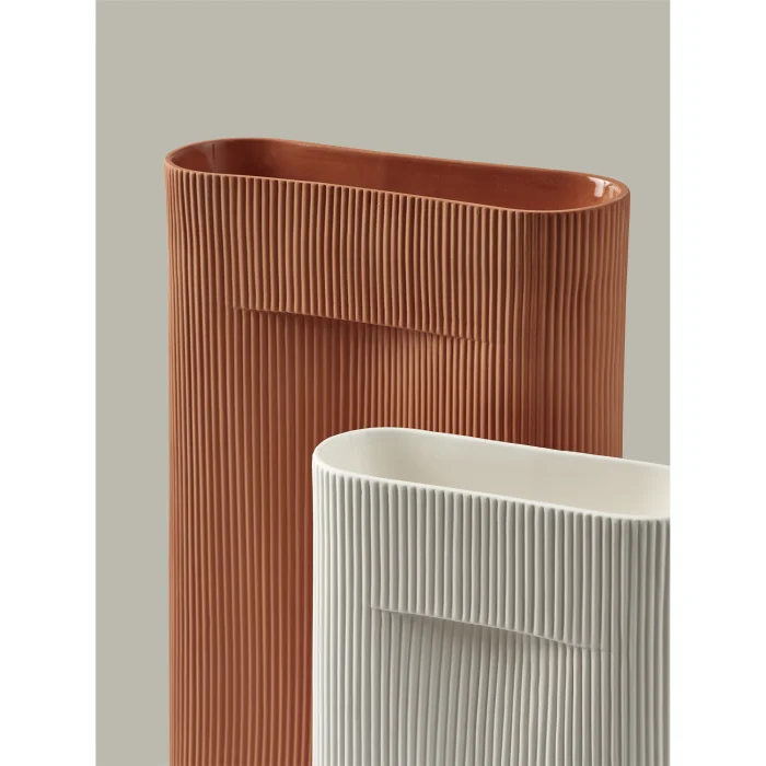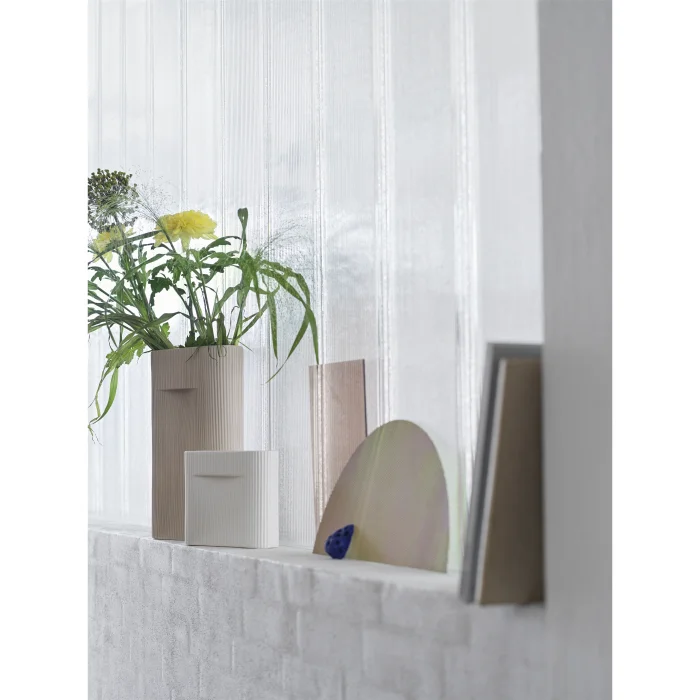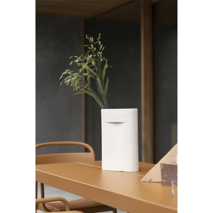 Seramik malzemeden üretilen Ridge Vase, hem fonksiyonel hem de dekoratif bir obje olarak öne çıkar. Mat yüzeyi ve dikey çizgili formu, çiçeklerin dengeli yerleştirilmesini sağlarken modern bir estetik sunar. İç ve dış mekan kullanımı için uygundur.