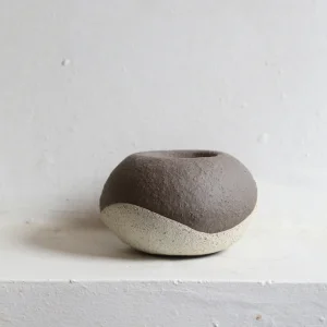 Elde şekillendirme ile üretilen bu ürün stoneware seramik çamuru kullanılarak yalnızca 1 adet yapılmıştır. Benekli stoneware çamur üzerine uygulanan beyaz magma sır ile dekorlanmıştır. 1250 derecede pişen vazo darbeye ve düşmelere karşı oldukça dayanıklıdır. Yükseklik; yaklaşık 14 cm, genişlik; yaklaşık 11 cm. Ağız genişliği; yaklaşık 3 cm.