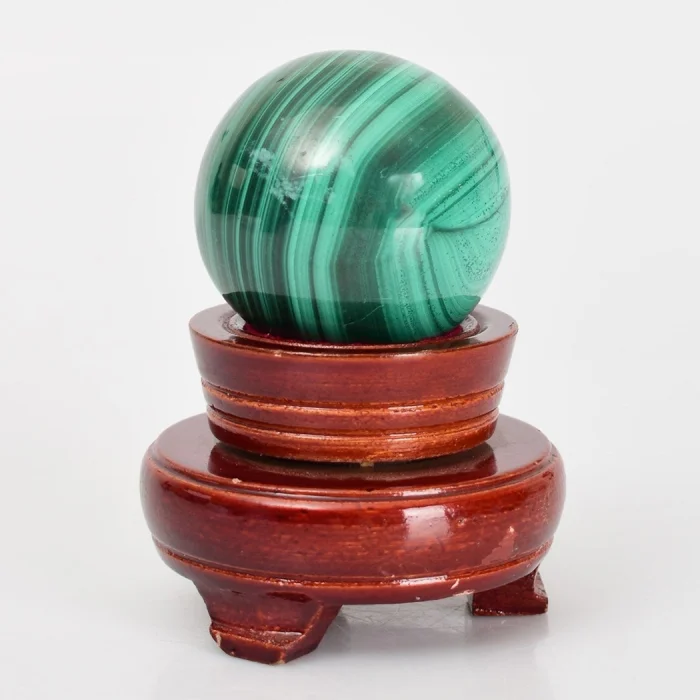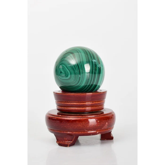 Malakit’in eşsiz yeşil dokusu, küre formuyla bütünleşerek ahşap stand üzerinde doğanın dengeli estetiğini yaşam alanınıza taşır.