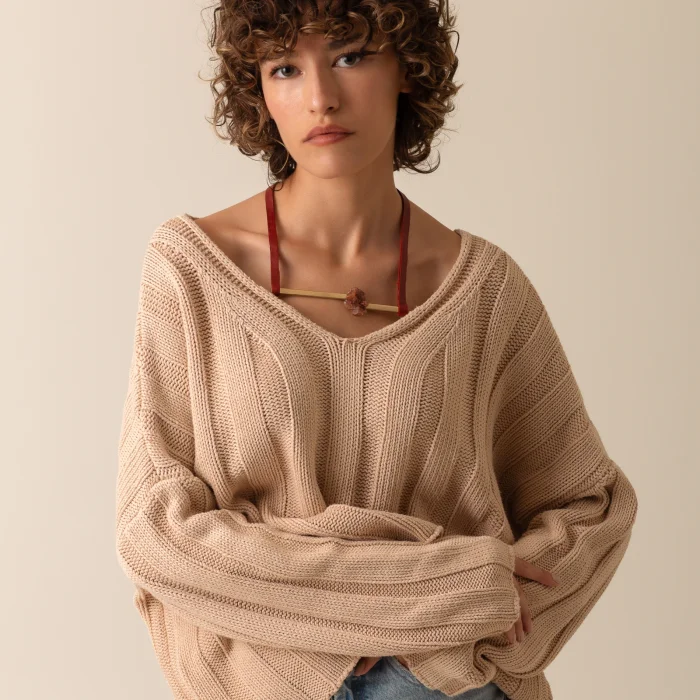 Yalın fakat gösterişli, sade fakat cesur bir tasarım. Bu ürün,pirinç ve aragonit taşı kullanılarak üretildi. Özgün tasarımı ve el yapımı olması, ürünü kişiye özel kılıyor. Ürün, Sava markalı kutusu ve kesesi içinde sizlerle buluşuyor. Doğal taşların form ve boyutları bire bir aynı olmadığı için, ürün ve görseli arasında çok ufak farklılıklar olabılir