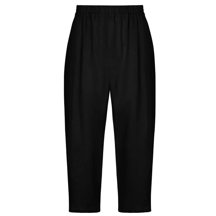 Siyah %100 Keten Beli Lastikli Oversized Unisex Pantolon