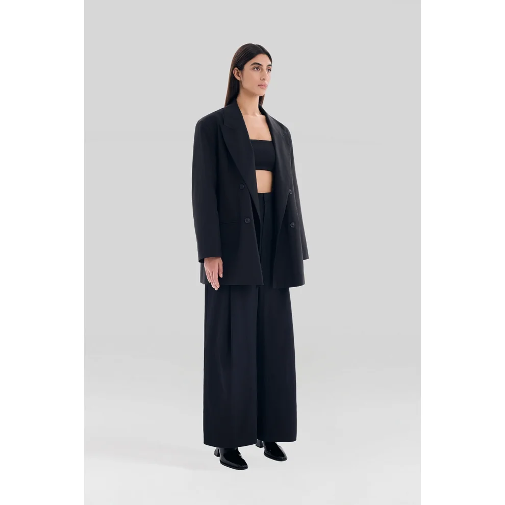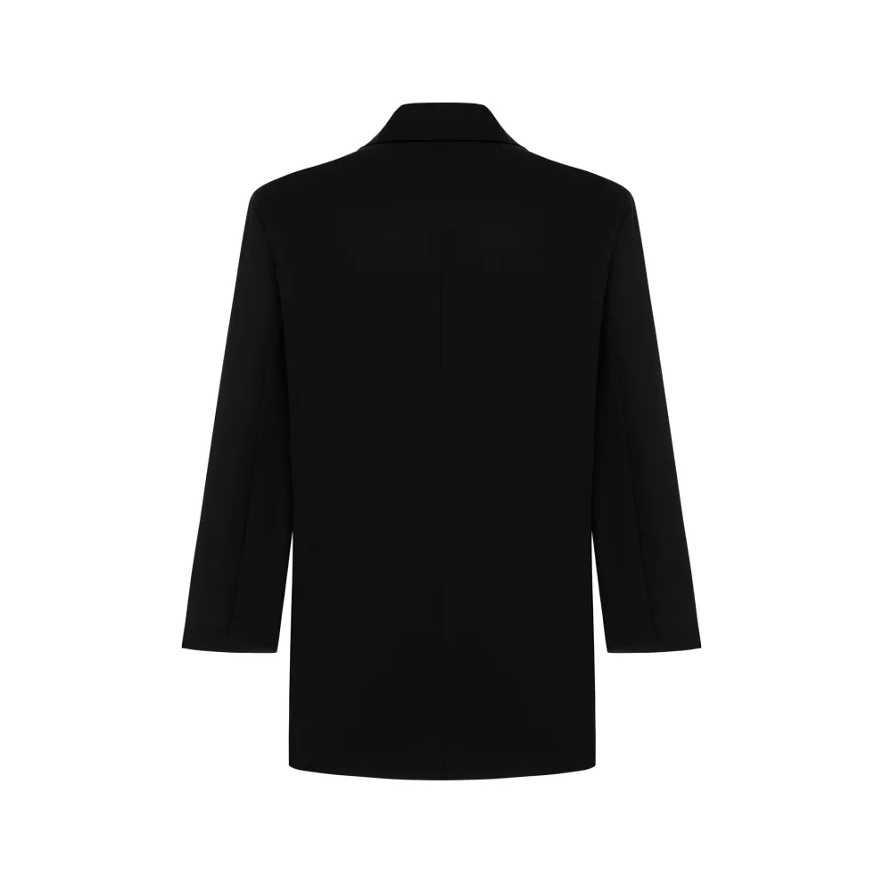 Siyah %40 Pes %60 Naylon Yakalı Kruvaze Oversized Unisex Ceket