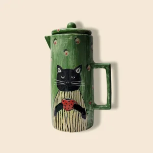 Çaydanlık formlu, canlı yeşil, tamamen el yapımı ve el boyaması, seramik aydınlatma, dekoratif masa, başucu lambası, dekoratif aydınlatma objesi.