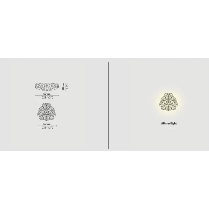 BOYUT: Ø 60 cm x 20 cm / Ø 23-1/2” x h. 8” RENKLER: Beyaz, Kadife MALZEMELER: Lentiflex® İLE: MagneticSystem® IŞIK KAYNAĞI: Ampuller E27: 4 X 12W LED Filament