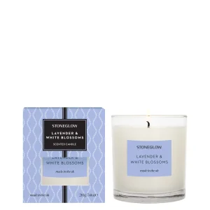 Lavender & White Blossom Watery green notes blend with flower blossoms, the calming scent of lavender and heady sweet lilac. 220g candle mineral wax (vegan)