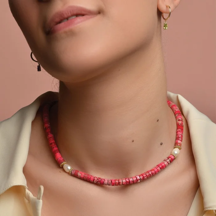 925 Gümüş Üzeri 14k Mikron Altın Kaplama. Pembe Havlit, Naturel İnci. Gümüş Ağırlık : 3,82 g. Uzunluk : 42 cm. Ürün sertifikalıdır.