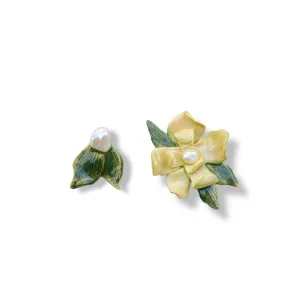 Ürün: Gardenia - İnci Detaylı Asimetrik Çiçek Küpe