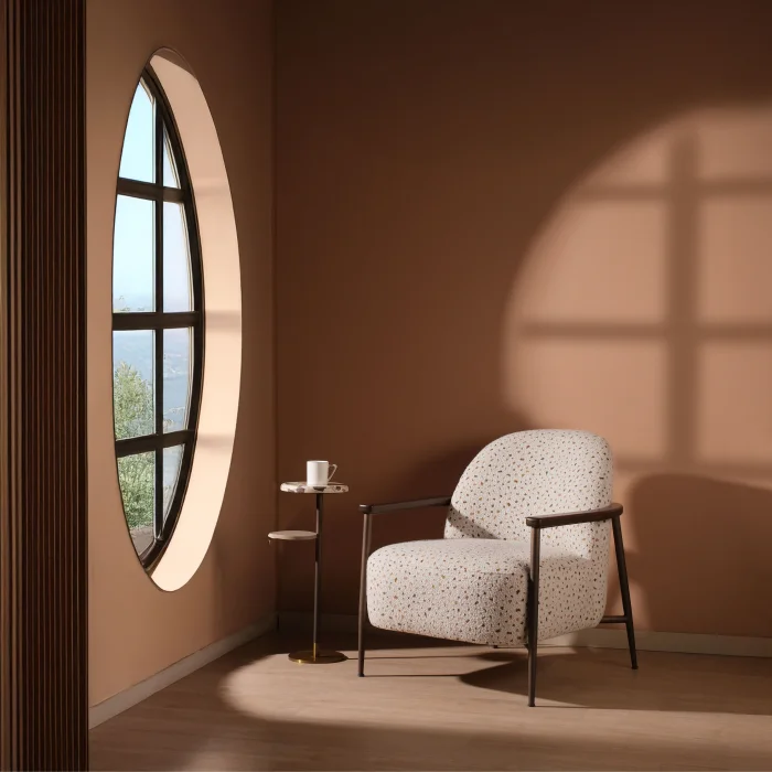 Ürün Özellikleri: Metal aksamı,demir profilden imal edilmiştir Elektrostatik toz boyalıdır Ahşap iç iskeleti, kayın kereste ve kontraplaktan imal edilmiştir Ahşap kol kısmı, kestane keresteden imal edilmiştir Kumaş, dokumadır Oturum kısmında 32 DNS HR (soft) sünger kullanılmıştır Ürüne yuvarlak hatlarını verebilmek için kuştüyü sünger ile takviye edilmiştir Ürün Ölçüleri: 75x83 cm Yükseklik: 82 cm Ürün Bakım ve Kullanımı: Döşeme ve metal kısmı, doğal temizleyiciler kullanarak nemli bir bezle kolaylıkla temizlenebilir Temizliğinde ağartıcı temizlik ürünleri kullanılmamalıdır Ürün Kurulumu: Montajlı olarak sevk edilmektedir, kurulum gerektirmez