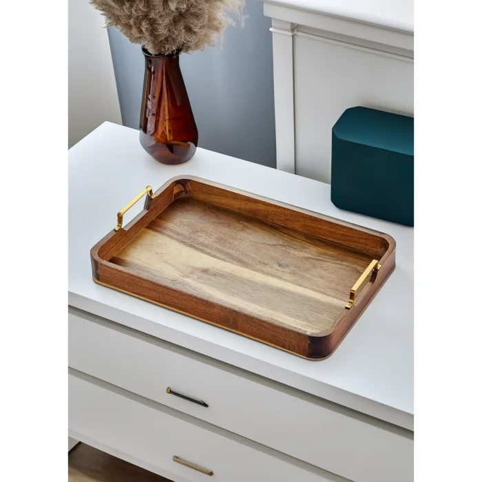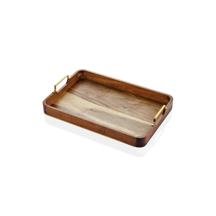 Ürün: Natura Metal Kollu Akasya Tepsi 45x30 Cm